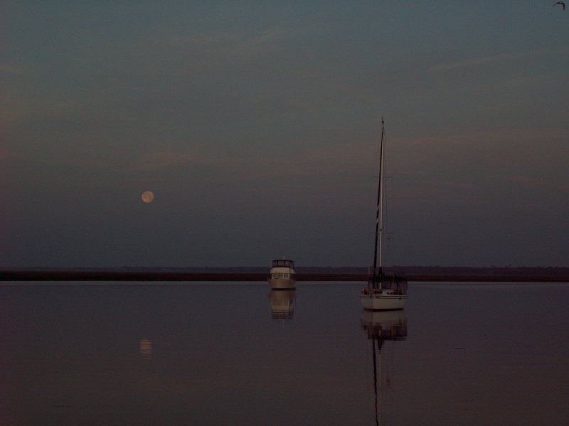 At dusk the wind switched directions and moved to the SW. This was not good as it moves water out of the creek and the water levels drop. We had anchored in 6.5’ of water which slowly became 5’ as the evening progressed.